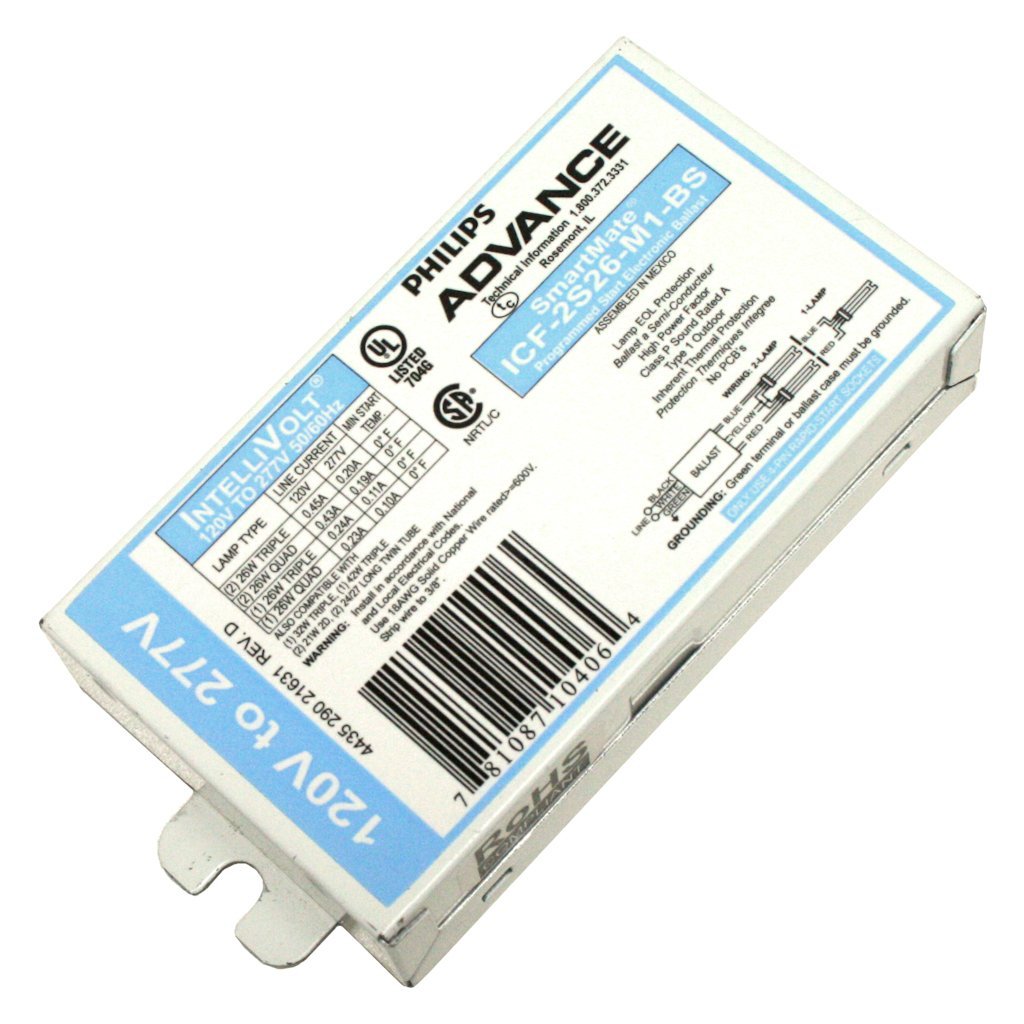 ICF2S26M1BS 1L 2L CFL ELECTRONIC BALLAST 120-277V BOTTOM LEADS W/ STUDS PROGRAM START 4PIN 26W |