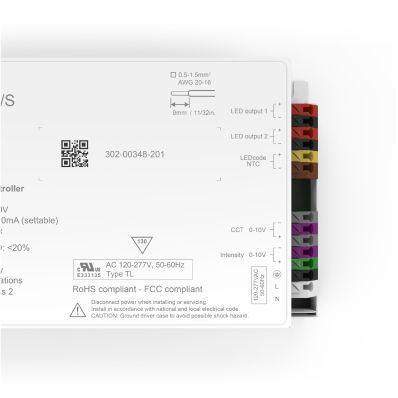 EC0561S2-ES16-875MA-LIN-10.0MIN eldoLED 50W PROGRAMMABLE LED DRIVER 100-277VAC-IN, 2-55VDC-OUT 150mA-1400mA (PROGRAMMED TO 875mA) RANGE DIMMING 0-10V 2 CONTROL CHANNELS DIM TO DARK W/SIDE LEADS, QUICK CONNECT ELDO 561S2 5.12"L X 3.01"W X 1.18"H 0.67LBS EA |