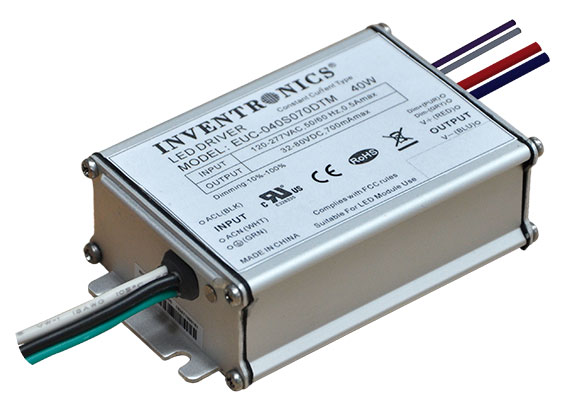 EUC-040S070DTM 40W CC LED DRIVER 90-305VAC-IN 32-57VDC-OUT 700MA ISOLATED 0-10V DIMMABLE 3.5"L 2.5"W 1.3"H |