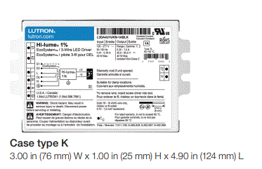 L3DA4U1UKN-EA050 LUTRON 40W CC CONSTANT CURRENT LED DRIVER 120-277V-IN 30-54V-OUT 500MA DIMMABLE COMPACT CASE, NON-STUDDED 4.2"L 3.0"W 1.0"H |