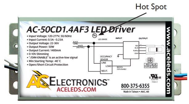 AC-40CD1.4APKV 40W ACE LED DRIVER CC 120-277V-IN 15-55V-OUT 400-mA-1400mA 0-10V-DIM |