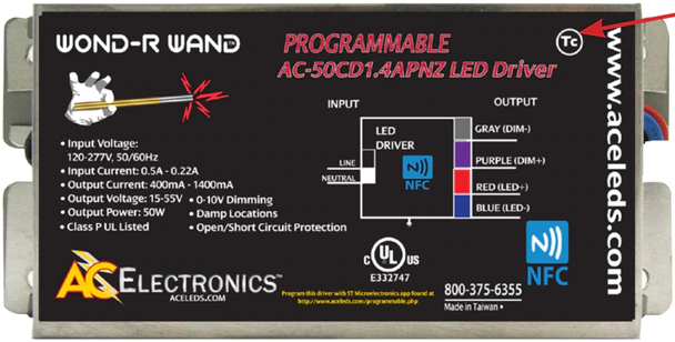 AC-50CD1.4APP1 50W PROGRAMMABLE LED DRIVER CONSTANT CURRENT CC 120-277VAC-IN 15-55VDC-OUT 400mA-1400mA 0-10V DIMMABLE 50,000HRS 5.23" X 2.48" X 1.18" *VENDOR REQUIRES 200 PIECE MINIMUM PRODUCTION RUN - 14 WEEK LEAD TIME - CANNOT BE CANCELLED* |