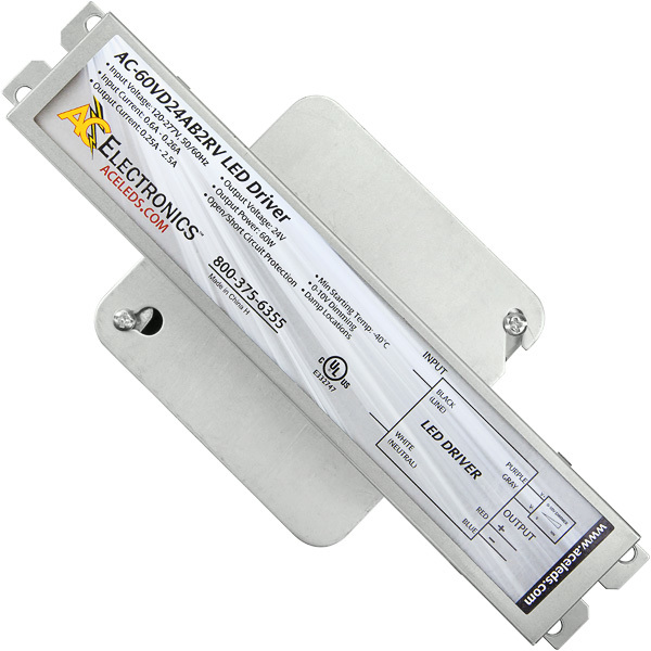 AC-60VD24AB2RV CV 60W DRIVER 120-277V-IN 24V-OUT 250MA- 2500MA DIMMABLE 0-10V 9.5"L 1.7"W 1.14"H 1.93 LBS |
