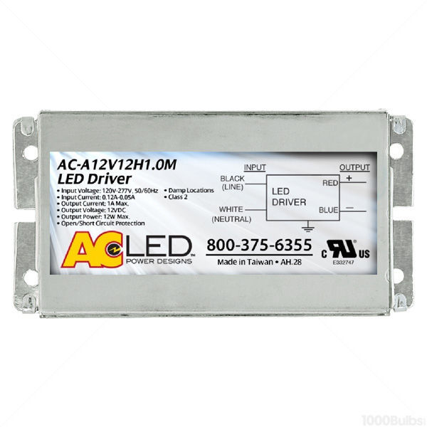 AC-A12V12H1.0M CV 12W 120-277V-IN 12V-OUT IP66 18' MAX REMOTE DISTANCE |