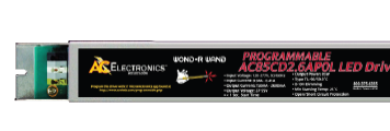 AC-50CD1.4APTNZ 50W PROGRAMMABLE CONSTANT CURRENT LED DRIVER 120-277VAC-IN 15-55VDC-OUT 400-1400MA RANGE DIMMABLE 0-10V PF>0.90 5.23"L 2.48"W 1.18"H ** NEED mA FOR FACTORY PROGRAMMING*** |