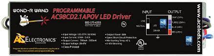 AC98CD2.1APOV 98W PROGRAMMABLE LED DRIVER CONSTANT CURRENT CC 120-277VAC-IN 28-47VDC-OUT 700mA-2100mA RANGE DEFAULT 2100mA DIMMABLE L 9.5" W 2.4" H 1.5" 2.10LBS **IN-HOUSE PROGRAMMING, mA NEEDED** AC-98CD2.1APOV |