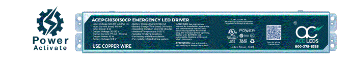 ACE-X10I-1555CP 10W LED EMERGENCY DRIVER 120-277V INPUT 15-55V OUTPUT 90MIN RUN TIME 110-670mA 5.23Lx2.48Wx1.18H |