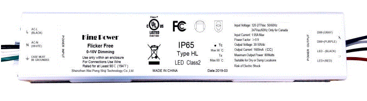 ASM2536-REP90WPWS0095-1330MA 90W CLASS 2 INDOOR LED DRIVER 120V-277VAC/IN 1330mA 21V-51VDC/OUT PF:>0.9 0-10V DIMMING FOR FIXTURE ALV208T10T481DSQQQSTKQW L 9.5" W 1.71" 1.33LBS |