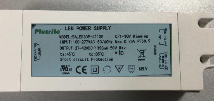 BALED60P-42135 60W LED DRIVER CONSTANT CURRENT CC 100-277VAC INPUT 27-42VDC OUTPUT 1350mA DIMMABLE 0-10V L 156.1 W 54.1 H 29.9MM |
