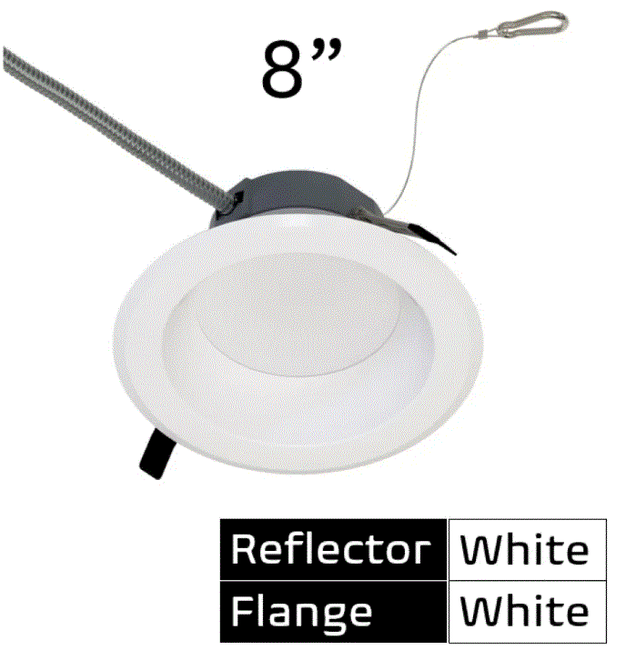CDL-8-LS-CS-WH-DDV 16W 24W 30W LED 8" ROUND RETROFIT DOWNLIGHT =200W 120V-277V WATTAGE & CCT SELECTABLE 2700K 3000K 3500K 4000K 5000K CRI>90+ 1800M 2700LM 3500LM DUAL DIMMING ELV/TRIAC/0-10V 50000HRS WHITE FINISH IP65 WET LOCATION RATED T24/COMPLIANT D 9.44" H 4.44" 2.00LBS |