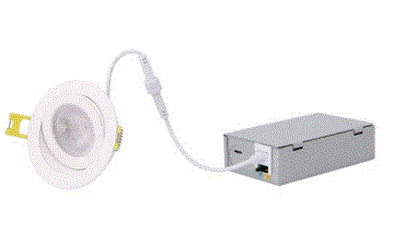 DGR-3R-6-D38-G1-9FSK 9W 3" ROUND LED GIMBAL DOWNLIGHT 120V CCT SELECTABLE-2700K 3000K 3500K 4000K 5000K CRI-90 W/INCLUDED DRIVER FL38D BEAM SPREAD 360D ROTATION 30D TILT T20/T24-COMPLIANT WHITE MATTE FINISH D 3.50" H 2.50" |