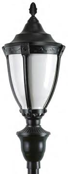 S85TF-LE26C-BK LED OUTDOOR DECORATIVE POST TOP FIXTURE W/ 9W LED LAMP E26 MEDIUM SCREW BASE 800LM 4000K 90CRI FROSTED LENS BLACK FINISH 20.0"T 7.3"W |