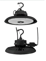 UFOHIBA4A/200HEUNHD850/BL 200W UFO 4A HIGH BAY LED FIXTURE HIGH EFFICIENCY =1000W HID 120V-347V 5000K CRI>80 34000LM 0-10V DIMMING PF:>0.80 6kV SURGE PROTECTION 6' POWER CABLE AND 3' DIMMING CABLE UL/FCC/TAA/RoHS RATED 150000HR BLACK HOUSING D 13.4" H 7.4" 8.13LBS |