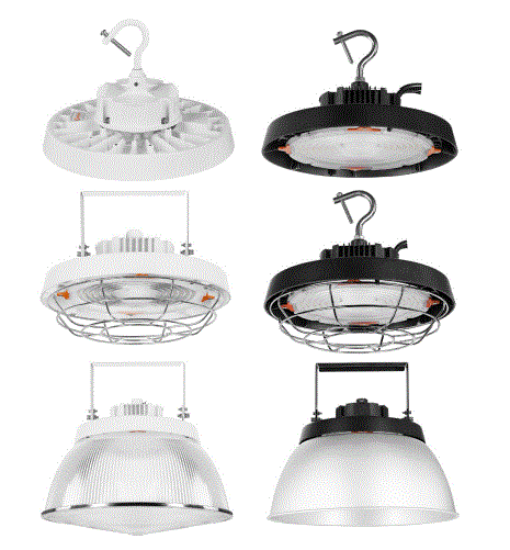 UFO5A/S320HUVD8SC7/BL LED UFO HIGH BAY DUAL SELECTABLE 240W 280W 320W 36,000LM/ 42,000LM/ 48,000LM 3500K 4000K 5000K 80CRI 277V-480V DIMMABLE BLACK FINISH 125,000HRS 14.2"DIA 5.0"H 8.42 LBS |