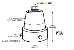 PTAGR-002 GRAY POLE TOP ADAPTER FOR 3" OD PIPE 3/4" # 10 BOLT H 4.875" D 4.312" |