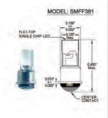 SMFF381WC1-5V/15-NC 15mA FLAT-TOP T1 ULTRA-RED 660nm LED SUB-MIDGET FLANGE BASE 5V SINGLE CHIP WATER CLEAR NEGATIVE CENTER L 0.40" D 0.16" |