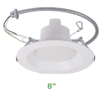 RCF814WCSDW WHITE 8" LED DOWNLIGHT WATTAGE/COLOR SELECTABLE 14/17/20W=18/20/22W CFL, 3000/3500/4000K (1400/1700/2000LM) CRI>80 0-10V DIMMING 120-347V 50000HRS ENERGY STAR/DAMP LOCATION- RATED 10.26"OD X 7.31"ID X 4.29"H 1.75LBS EA |
