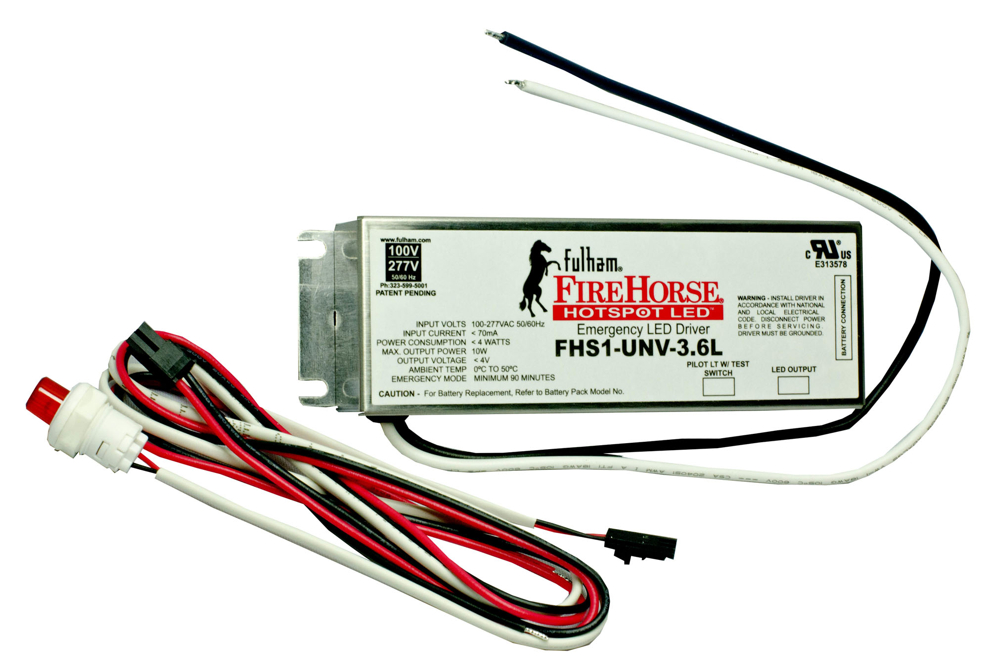FHS2-UNV-56S 20W EMERGENCY LED DRIVER CONSTANT CURRENT CC 100-277VAC-IN 11-56VDC-OUT 100mA-700MA 90-350MINS FHS-HARNESS-700 INCLUDED FIREHORSE |