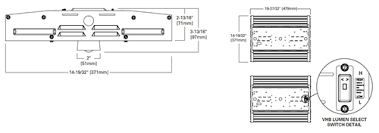 HBLAOS-1824C3R 116W 146W 171W LED METALUX HIGHBAY FIXTURE W/ADJUSTABLE OPTICS =400W 120V-277V FIELD ADJUSTABLE WATTAGE & CCT SELECTABLE 3500K 4000K 5000K CRI-80 17891LM 21987LM 24064LM 0-10V DIMMABLE L 24.80" W 12.20" H 1.80" 7.94LBS |
