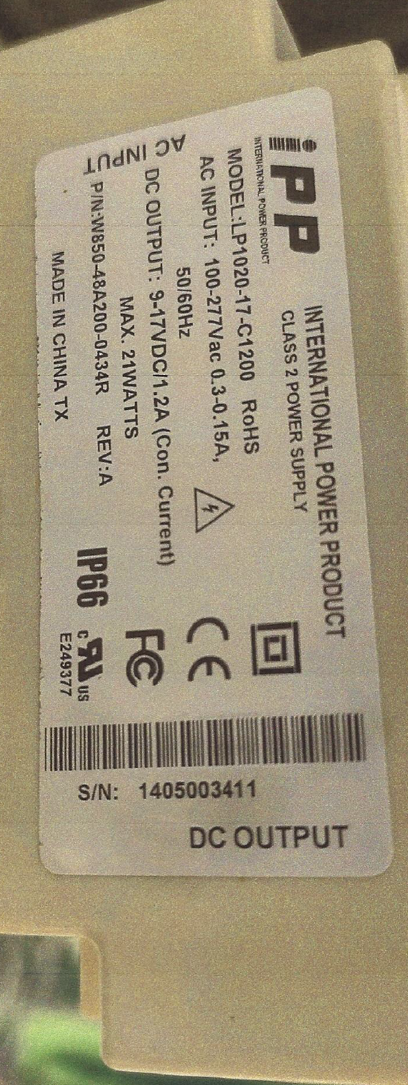 LP1020-17-C1200 20W LED DRIVER CC 100-277VAC INPUT 9-17VDC OUTPUT 1200mA IP66 RATED DRY OR DAMP LOCATION |