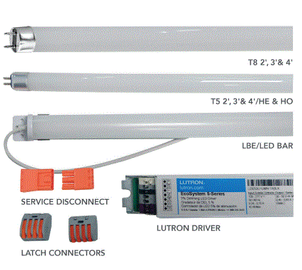 RP-T8-4FT-2L-840-3W-M-G2-B12L LUTRON C-FLEX LED & DRIVER RETROFIT KIT 2L 4'/48" T8 4000K 80CRI 4,365LM DIMMABLE ECO SYSTEM DIMS TO 1% LINEAR DRIVER |