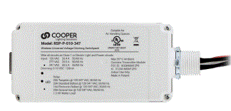 RSP-P-010-347 120V/277V/347VAC WIRELESS DIMMING SWITCHPACK W/20A 0-10V DIMMING OUTPUT WAVELINX THREADED 1/2-14 NPT COOPER L 5.00" W 2.60" H 1.70" |