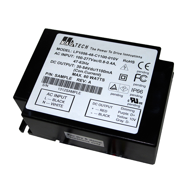 LP1096-48-C1500-010V 84W 100-277VAC-IN 30-56VDC-OUT 1500MA CC LED DRIVER 0 - 10V DIMMABLE IP68 50,000HRS MAGTECH |