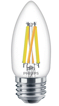 5B11/PER/UD/CL/G/E26/WGD 5W CLEAR FILAMENT B11 LED E26-MEDIUM SCREW BASE =60W 120V 2200K-2700K CRI-95 500LM DIMMABLE 300D BEAM ANGLE 15000HR T20/COMPLAINT L 3.56" D 1.38" |