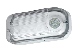 LUMELOD LED OUTDOOR EMERGENCY LIGHT 120-277V CLEAR POLY CARBONATE SHIELD WITH WHITE THERMOPLASTIC HOUSING DUEL LED LAMPS WET LOCATION RATED |
