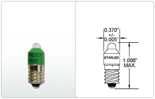 MS1131WC6NW-6V-48V-DP LED T3-1/4 ULTRA PURE GREEN WATER CLEAR 520-530nm E10/MINIATURE SCREW BASE 6V-48VAC/DC L 1.16" D 0.38" |