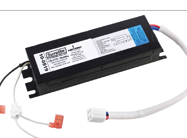 10-1188 1/2L BALLAST FOR G36T5 (41W) - G64T5 (75W) 100-240V, TYPE 1 OUTDOOR, SOUND RATED A, INHERENT THERMAL PROTECTOR, SURELITE 11.69"L X 3.13"W X 1.96"H 3.50LBS EA |