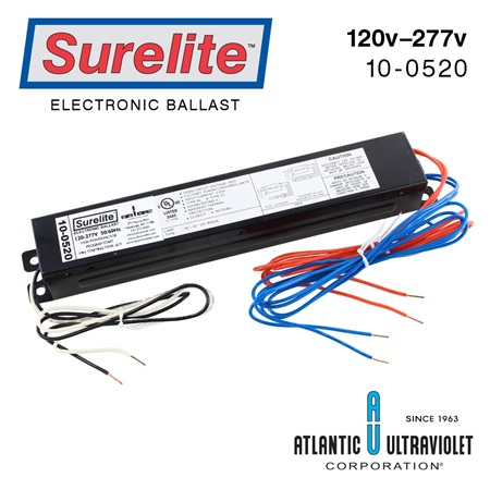 10-1185 220W MAX ELECTRONIC SURELITE BALLAST 120VAC/IN 2T5HO/T8HO/T10/T10VHO/T12HO AMERICAN ULTRAVIOLET TXG285 REPLACEMENT BALLAST L 19.24" W 1.72" H 1.03" 2.05LBS |