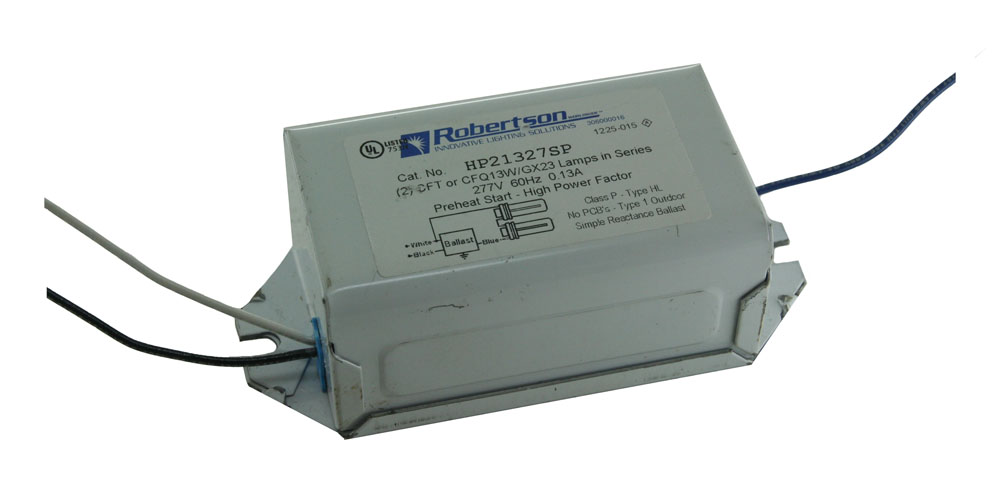 R-HP213P-VERSION-2 2L 13W MAGNETIC BALLAST CFL 2PIN TWIN TUBES 120V LEADS OUT OF BOTH ENDS |