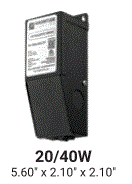 M40L12DC-AR 40W LED MAGNETIC DRIVER CV-CONSTANT VOLTAGE 120VAC-IN 3070mA 12VDC-OUT PHASE-DIMMABLE W/MLV TRIAC DIMMER BLACK FINISH JUNCTION BOX WITH 7/8" KNOCKOUTS DRY/DAMP LOCATION RATED WITH AUTO RESET UL/ETL/NEMA3R L 5.60" W 2.10" H 2.10" 2.20LBS |
